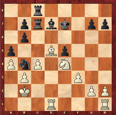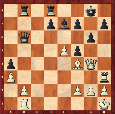 Galmandakh - Motylev; 1.kolo. Nepřesnost přišla už s tahem 23...Sf5?! kterou bílý mohl trestat pomocí 24. Sxb7!, zahrál však 24. Vhe1 Vd8 25. Jg3 a černý se nechal zlákat Jd3+? 26. Kc3 Jxe1 27. Jxf5+ Kf6 28. Je3 +-. Bílé figury jsou podstatně lepší než bezzubé černé věže, což bílý časem také dokázal.