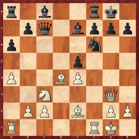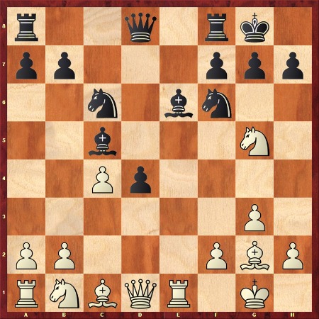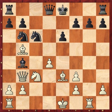 Čierny sa rozhodol pre variantu spojenú s 12. Jd5 13. Vxg7 Db6 14. Kf1. Kto stojí lepšie?