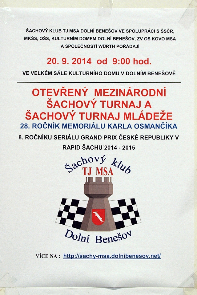 Dolní Benešov se v sobotu 20.9.2014 stal již počtvrté ve své historii hostem účastníků osmého ročníku Grand Prix ČR v rapid šachu.