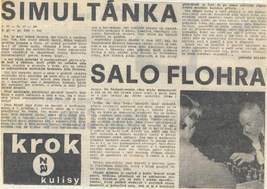 V roce 1973 sehrál Salo Flohr v Československu řadu simultánek. Referoval o tom Čs. šach 1973 na obálce čísla 4 (rozehrál celkem 1167 partií se super výsledkem +945 -49 =173) a dále v rozhovoru na straně 4. V Brně předvedl dvě simultánky v Domě pionýrů v Lužánkách (žáci prohráli +43 -2 =5 ale dospělí dosáhli dobrého výsledku +27 -10 =13) a obě se setkaly s obrovským zájmem.