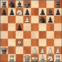 14.Jd4+- Kf8 15.Sxd6+ Dxd6 16.Jcb5 Otevírá sloupec a čistí diagonálu na krále. 16...De5 17.Db4+ Kg8 18.Jc6 De4 19.Je7+ Kf8 20.Jg6+ Kg8 21.Df8+ 1-0