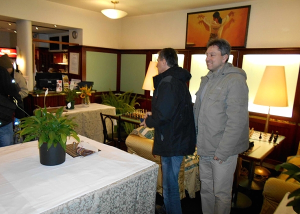 Z hotelu to máme kousek přes náměstí do oficiální hrací místnosti a tak v pohodě vyrážíme pěšky. Jaké je naše překvapení, když v hotelu není žádný šachista! Že by z  nás dostali domácí vítr a raději nenastoupili?