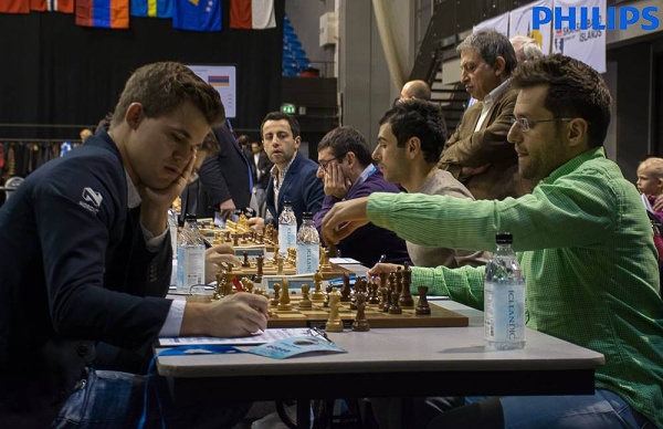 Bezesporu šlágrem včerejšího kola byl souboj Carlsen – Aronian. Carlsen se už v zahájení principiálně šeredně zmýlil, když odmítl jít s Aronianem do berlínské obrany, v dynamické střední hře mu sežral jednoho pěšce, pak ještě jednoho... a bez odporu prohrál. Absolutorium Aronianovi, který se po předešlé prohře s Vachierem dokázal briskně vzchopit a partii sehrál ve svém nejlepším stylu.