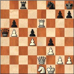 23...Jf4? Správné bylo okamžité zapojení černé dámy do útoku tahem 23...Dd8! Bílý nemá nic lepšího než 24.bxc6 Dh4+ 25.Kg2 h1D+ 26.Dxh1 Dg5+ 27.Kf2 Dd2+ 28.Se2 Dxd4+ 29.Ke1 g6 30.cxd7+ Kxd7-/+ s pro něj velmi nepříjemnou koncovkou. 24.bxc6 Dxc6 25.Db1! f5 26.exf6 gxf6 27.Se2? Správné bylo jít po krku dotěrnému černému jezdci: 27.Se3! h1J+!? (27...Jd5 také vede k věčnému šachu po 28.Dg6+ Kd8 29.Dg8+ Kc7 30.Dc8+ Kd6 31.Df8+ Kc7 (ale ne 31...Ke5? 32.Db8+ Dc7 (32...Kf5?? 33.Sd3# je velmi hezký mat...:-)) 33.Dh8!+/- s výhodou bílého) 32.Dc8+=) 28.Dxh1 Dc2+ 29.Kg1 Dg6+ 30.Kf2 Dc2+= s remízou. 27...Dd6? Opět bylo správné dámu převést na král. křídlo, tentokrát po 27...Dd5! 28.Se3 Dh5! 29.Dh1 Dh4+ 30.Kf1 Dh3+ 31.Kf2 Jh5! 32.f4 Jg3 33.Da8+ Kf7 34.Sf3 h1D 35.Sxh1 Jxh1+ 36.Ke2 Jg3+ 37.Kf2 d5!-+ s pravděpodobně vyhranou pozicí černého. 28.Se3 f5? 28...Jxe2 29.Kxe2 f5 30.Kf2 f4= 29.Dc1?! Po 29.Sxf4! Dxf4 30.Kg2 De3 31.Dd1 Dxa3 32.Kxh2+/= by už na výhru mohl pomýšlet pouze bílý. 29...Jxe2 30.Kxe2 Dc6= 31.Da1 Dc2+?! 31...Dc4+ 32.Kf2 Dc2+ 33.Kg3 f4+ 34.Sxf4 h1D 35.Dxh1 Dg6+ 36.Kf2 Dc2+= 32.Sd2+/-