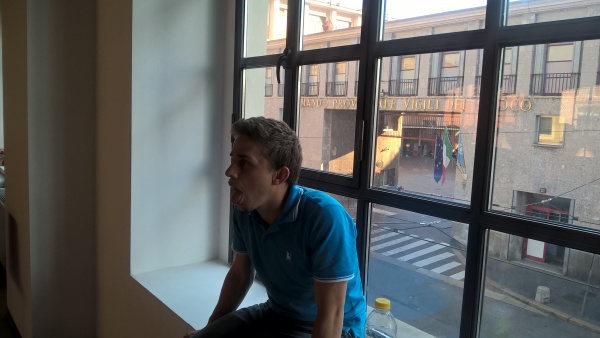 Ráno 26.6. jsem letěl z Prahy miniletadlem společnosti ČSA, let byl bez problémů, letušky (byly dvě) měly dohromady tak 150 let, ale kafčo, džus a zákusek jsem dostal, tak aspoň něco. Po přistání na letišti Miláno/Malpensa bylo ještě potřeba dle pokynů dorazit nejlépe do středu Milána. Přepravu z letiště zajistil autobus za 10 euro, byl plný turistů pocházejících z Asie. Cestu autobusem jsem prospal a tak jsem se najednou objevil na stanici Milano Centro, u hlavního vlakového nádraží. Zde jsem byl zhruba okolo jedenácté hodiny a musel čekat zhruba do šesti do večera, než mě známí vyzvednou. Zjistil jsem, že Italové se k angličtině moc nemají a vzhledem k tomu, že má italština není špatná, ale absolutně žádná (teda poprosit o kafé umím a pár vulgarit už taky umím), tak jsem se raději nikam moc nehrnul a v poklidu jsem si našel supermarket, kde prodávali Budvara za 1.5 eura, což mi přišlo v pohodě, cigarety okolo 4-5 eur, což je skoro stejné jak u nás a v poklidu jsem se rozvalil v místním parku na Piazza Luigi di Savoia (náměstí Ludvíka Savojského??, kdyžtak mě opravte) a sledoval přistěhovalce z Afriky. Po nějaké době si ke mně přisednul slušně oblečený Rumun, moc anglicky neuměl, ale aspoň mi to vše utíkalo rychlejš.