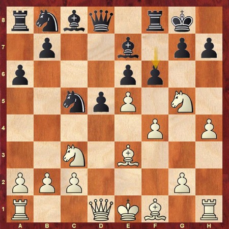 Arjun vstoupil do prvního rapidu francouzskou obranou a rychle se dostal do potíží. Po 10…f6 přišla šance, která mohla partii okamžitě zabalit: