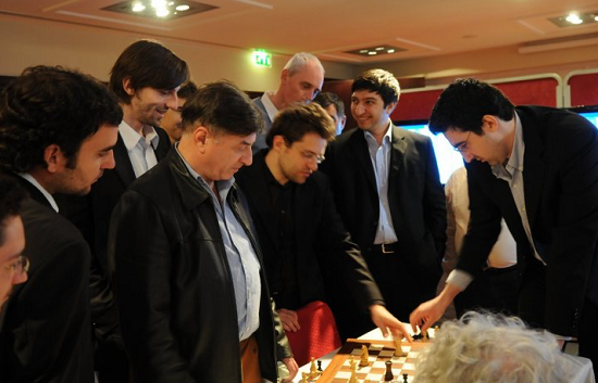 Na fotce Karjakin nehraje s Griščukem, ale Gashimovem...
