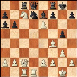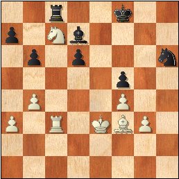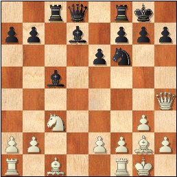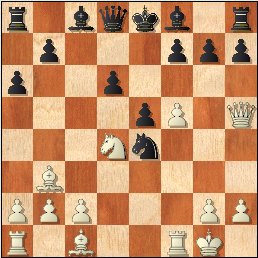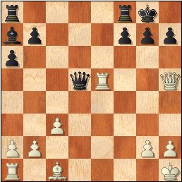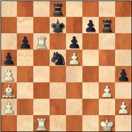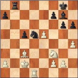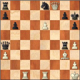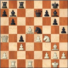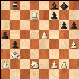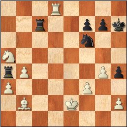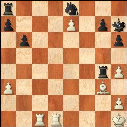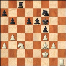 1.e4 c6 2.d4 d5 3.e5 Sf5 4.Jf3 e6 5.Se2 c5 6.Se3 cxd4 7.Jxd4 Je7 8.c4 Jbc6 9.Da4 a6 10.Ja3 Da5+ 11.Dxa5 Jxa5 12.0-0 dxc4 13.Jxf5 Jxf5 14.Sb6 Sxa3 15.bxa3 Jc6 16.f4 g5 17.Sxc4 gxf4 18.Vae1 Je3 19.Vxf4 Jxc4 20.Vxc4 Vg8 21.Sc7 Je7 22.Sd6 Jd5 23.Vh4 Vg7 24.Vc1 Kd7 25.g3 Vh8 26.a4 a5 27.Vhc4 h5 28.Vc5 b6 29.Vc6 h4 30.Sa3 Vd8 Diagram č.15 Zcela bez formy je Leko, který to následující hrubicí jen potvrdil:31.Kf2?? Hrozný tah, když si uvědomíme, že jej zahrál hráč s elem +2700 a před pár roky vyzyvatel o MS. Jenomže i supervelmistři jsou lidé a když se nedaří, tak se nedaří... [31.V1c4 hxg3 32.h4! g2 33.Sc1! krásnš omezení jezdce 33...Vh8 34.Sg5 Vxg5 35.hxg5 Vh1+ 36.Kxg2 Vh5 37.Kf3 Vxg5 s rovnou hrou] 31...hxg3+ 32.hxg3 Vg4 Černý má skvělou šanci na výhru díky pěšcům bílého, kteří jsou všichni slabí(!) 33.Vd6+ Ke8 34.Vh1 Vxd6 35.Sxd6 Vxa4 36.a3 Jc3 37.Vh4?? Další hrozný tah v podání maďarského supervelmistra. Leko je v této partii k nepoznání. 37...f5? I Le chybuje...Nicméně i po tomto tahu je černá pozice nejspíše vyhraná, ale černý musí hrát velmi přesně. [37...Vxh4 38.gxh4 f5! je jasné 0:1 39.h5 Jd5 40.Kg3 Kf7 41.Kh4 (41.a4 Jc3 42.Sc7 Jxa4) 41...b5 42.Kg5 b4-+] 38.Vh8+ Kf7 39.Vf8+ Kg7 40.Ve8 Je4+ 41.Ke1 Jg5! 42.Vb8 Vg4 43.Vxb6? rezignace [43.Se7 kladlo větší odpor] 43...Vxg3 44.Va6 f4! Diagram č.16 tento pěšec bude stát bílého figuru a tím i partii45.Vxa5 Vg1+ 46.Kf2 Jh3+ 47.Kf3 Vg3+ 48.Ke4 f3 49.Sc5 f2 50.Sxf2 Jxf2+ 0-1 51.Kd4 Není to dávno, co jsem se Zuzkou bavil na téma rezignace. A zhodli jsme se, že čím je souper slabší, tím déle setrvává v marném odporu (zase na jiných věcech jsme se neshodli). Nuže, zde se samozřejmně měl Leko vzdát...jenomže zase chápu že vzdávat partii je někdy velmi těžké, navíc Leko musel být velmi nešťastný, takhle prohrát bílými... 51...Kg6 52.Va8 Vd3+ 53.Kc4 Vd5 54.Vg8+ Kf7 55.Vg3 Je4 56.Vh3 Jc5 57.Kb5 Jd7+ 58.Ka6 Jxe5 59.a4 Jc4 0-1