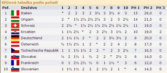 07.06.2010 09:00 | Mitropa Cup 2010Bohužel ani v posledním kole nedokázal náš mužský reprezentační výběr uhrát ani zápasovou remízu, po prohře Žilky a třech remízách odešel s Chorvaty poražen 1½:2½. To nás odsunulo na celkové 7. místo, což rozhodně n...