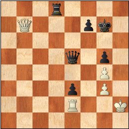 V této pozici stojí samozřejmě černý úplně na výhru. Asi nejjednodušší bylo zahrát 42...Vb8! 43.Dc6 Vh8+ 44.Kg2 Da1-+ s rozhodujícím útokem. (Ovšem nikoli okamžité 42...Vh8+ 43.Kg2 Da1? pro 44.Db2+!=) V partii se však stalo 42...Vd2?, což sice na první pohled vypadá dobře, ale má to podstatnou vadu. 43.Vxd2! exd2 Ale vždyť černý pěšec projde do dámy... 44.Dd7! To je ten problém! Pavel si správně povšimnul patových motivů, kvůli kterým si černý nemůže postavit dámu. 44...De4 Po zdánlivě vyhrávajícím 44...De2+ 45.Kh3 d1D (45...De1 je podobné: 46.Dd4+ (lze hrát rovnou 46.Dxd2, ale po 46...Dh1+ 47.Dh2 Dxh2+ 48.Kxh2 Kf6 49.Kg2 Ke5 musí zahrát jediné 50.Kf2!=) 46...f6 47.Dxd2! Dxd2=) přijde 46.Dxf7+! Kxf7 a přestože má černý dvě dámy navíc, bílý král je v patu, tudíž remíza. (46...Kh8 47.Dg8+=; 46...Kh6 47.Dg6+=); 44...De1 45.Dd4+ f6 46.Dd7+ Kh6 47.Dd6=. 45.Dxd2 Dxg4 46.Dc3+ Kg6 47.Dd3+ Df5 Bílý se tak zbavil nebezpečného volného pěšce a tuto koncovku již dokázal udržet. ½-½